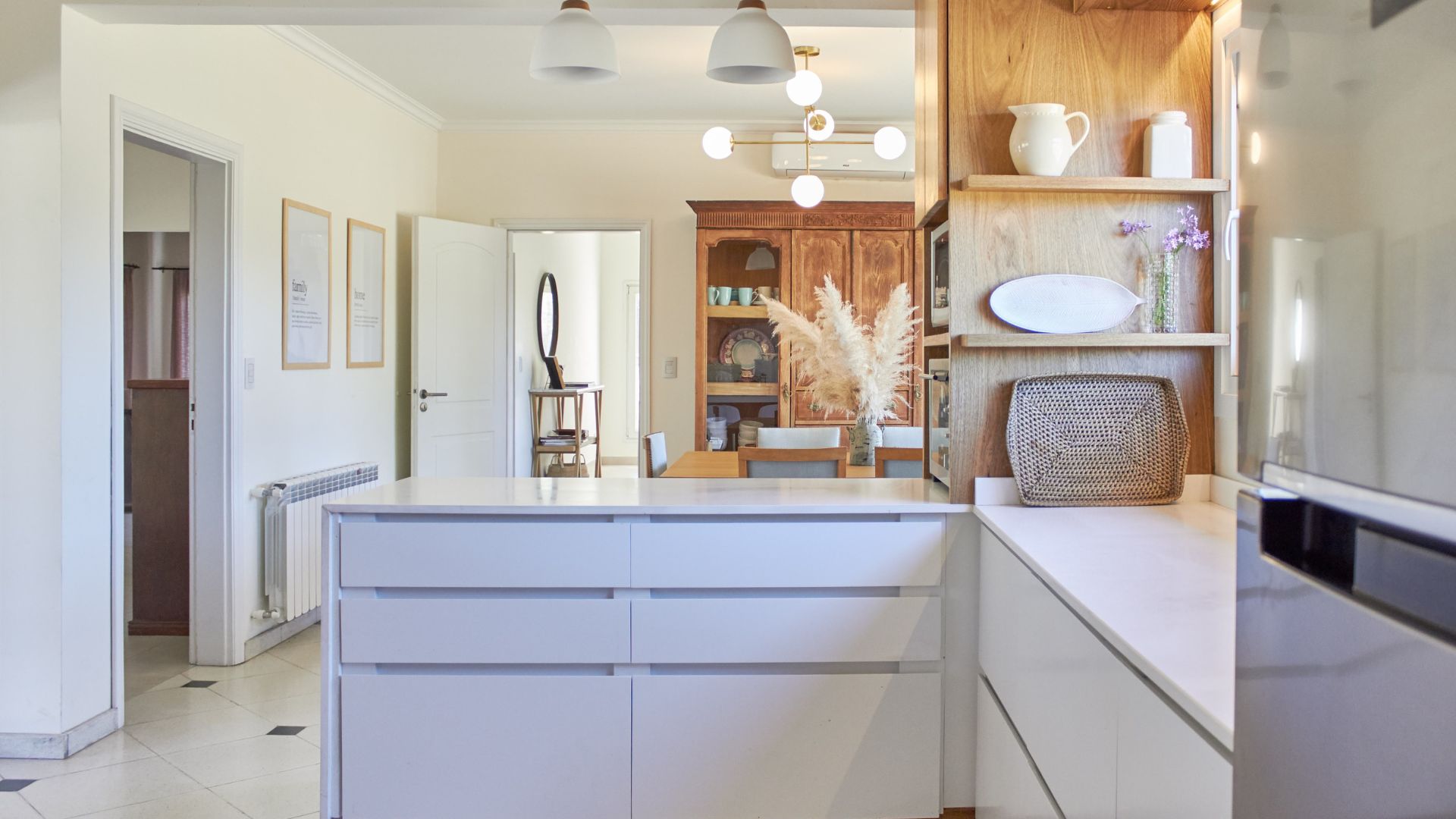 El proyecto se planteó para optimizar el uso del exterior y enriquecer la vida cotidiana. La cocina-comedor fue modernizada y se sumaron áreas semicubiertas que transforman el parque en un espacio de uso permanente. La zona de parrilla se amplió para integrar un comedor exterior con un living con chimenea, conformando un núcleo social protegido y de mayor capacidad. También se proyectó un semicubierto junto al dormitorio principal, pensado como refugio íntimo vinculado al exterior. En una etapa posterior se incorporaron un playroom y un dormitorio nuevo, incrementando la superficie útil y la versatilidad de la vivienda. El resultado mejora la circulación, amplía las posibilidades de uso a lo largo del año y eleva la calidad del habitar cotidiano.